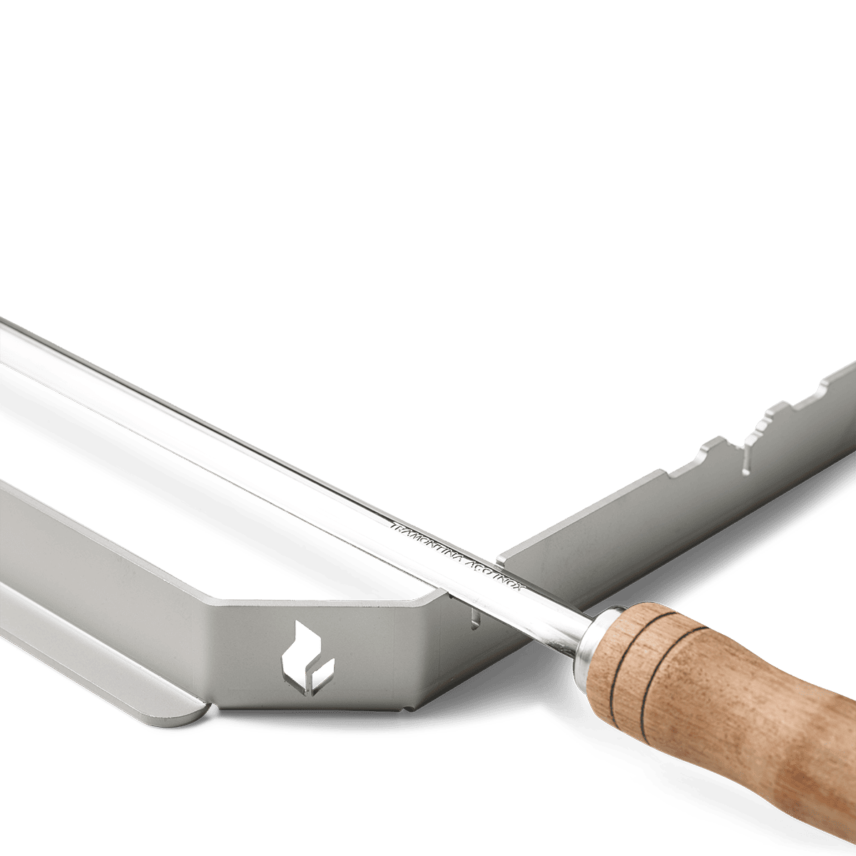 Braaimaster®-churrasco-ramen är det perfekta tillbehöret till Braaimaster. Enkel att använda och snygg att servera med. Ramen rymmer 4 spett och/eller churrascogafflar, som säljs separat i olika utföranden. Smarta skåror gör det möjligt att vrida spettet ett kvarts varv åt gången utan att det snurrar tillbaka.